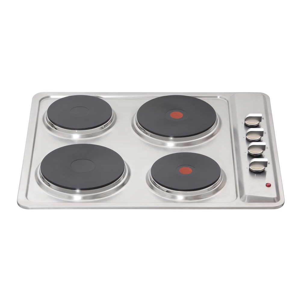 The Matrix MHE001SS is a practical four plate electric hob in stainless steel. The hob has 6 power levels with a power indicator light.